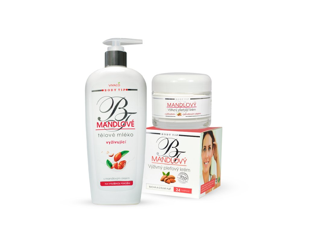 Dárkové balení výživné kosmetiky s mandlovým olejem pro péči o pokožku těla i obličeje. Originální receptura s vysokým podílem zvláčňujících a hydratačních látek dodá suché kůži potřebnou výživu, ochranu a hydrataci. Zpevňuje zralou pleť, hloubkově regeneruje a navrací pokožce přirozenou pružnost a hebkost. Mandlový olej nevyvolává alergické reakce a je vhodný pro všechny typy pleti, včetně citlivé.