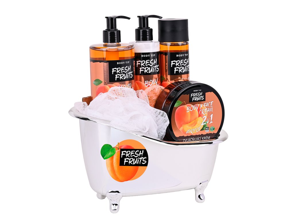 Dárkové balení kosmetiky se šťavnatou vůní zralých meruněk přinese zpestření do každodenních koupelnových rituálů a vyvolá hřejivé vzpomínky na léto plné slunce. Praktická kombinace produktů pro péči o pleť i tělo se postará o potřebnou výživu, hydrataci a péči o pokožku celého těla během koupele i po ní. Všechny produkty z této kolekce doprovází svěží ovocná vůně.