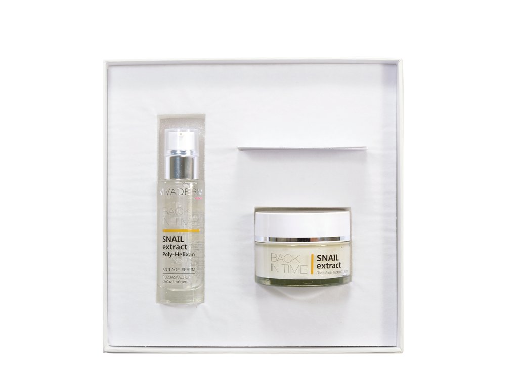 Udělejte radost sobě nebo svým blízkým luxusní sadou kosmetiky BACK IN TIME Snail Extract. Dárkové balení obsahuje hydratační krém a rozjasňující pleťové sérum zabalené v elegantní dárkové krabičce.