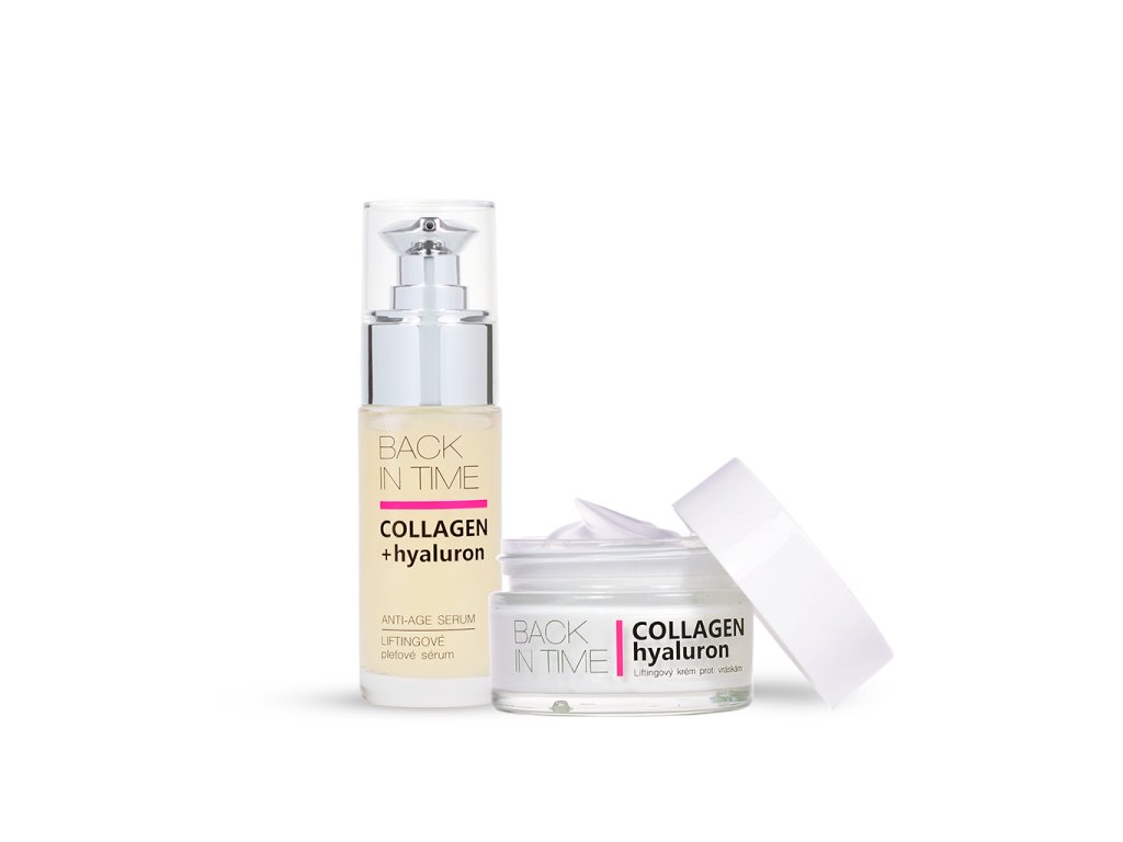 Udělejte radost sobě nebo svým blízkým luxusní sadou kosmetiky BACK IN TIME Collagen + Hyaluron. Dárkové balení obsahuje liftingový krém a liftingové sérum zabalené v elegantní dárkové krabičce.
