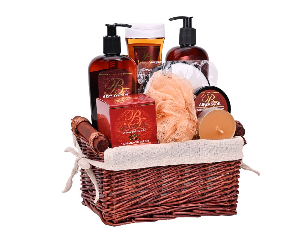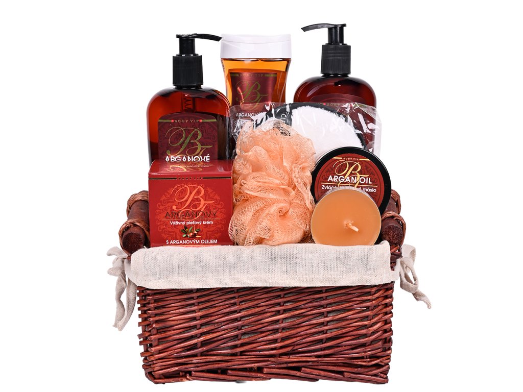 Dárkový košík kosmetiky se vzácným arganovým olejem v sobě ukrývá sladěnou kombinaci produktů, speciálně vybraných tak, aby při každodenní péči o pleť a tělo žádné ženě nic nechybělo.