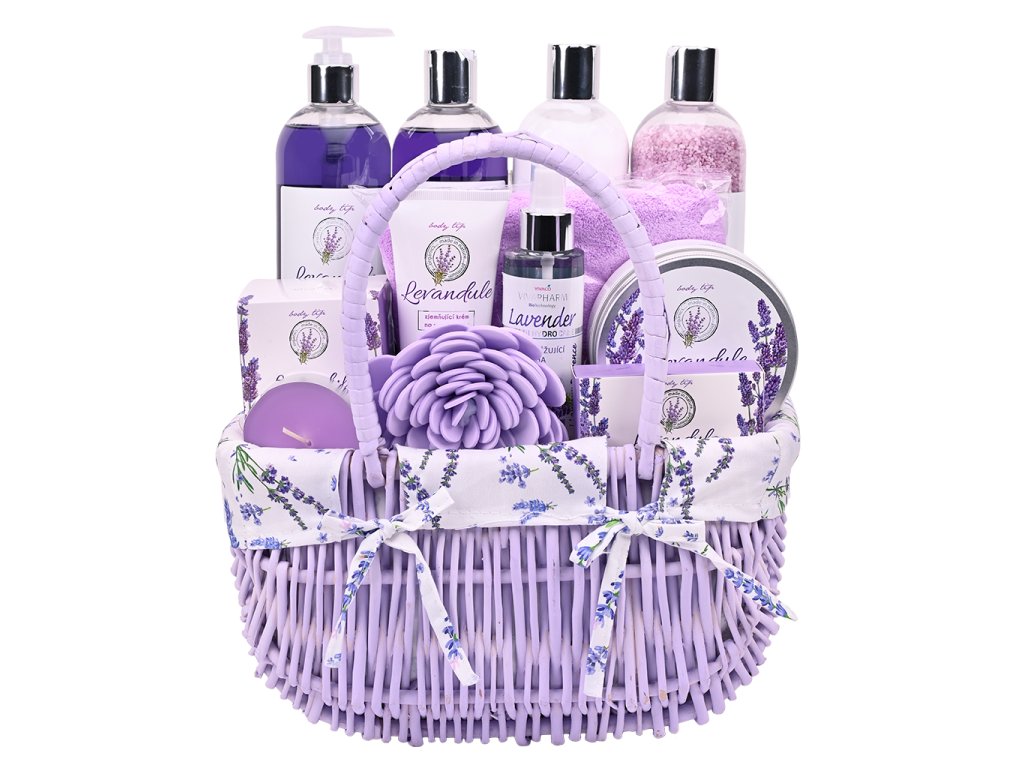 Dárkový proutěný koš plný levandulové kosmetiky potěší při každé příležitosti a zároveň udělá dojem. Pečlivě vybraná kombinace jedinečných produktů napomáhá k dokonalé relaxaci, regeneraci a úlevě od každodenního stresu.
